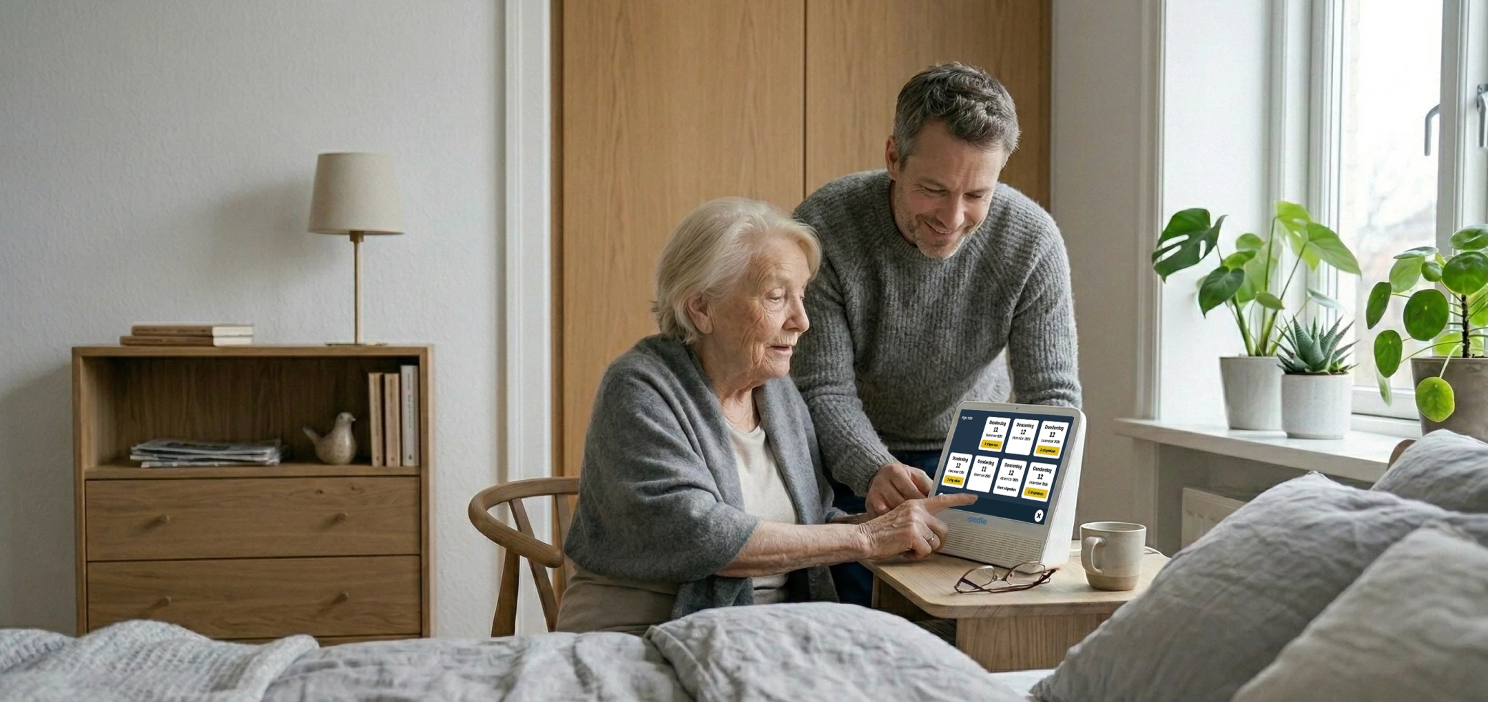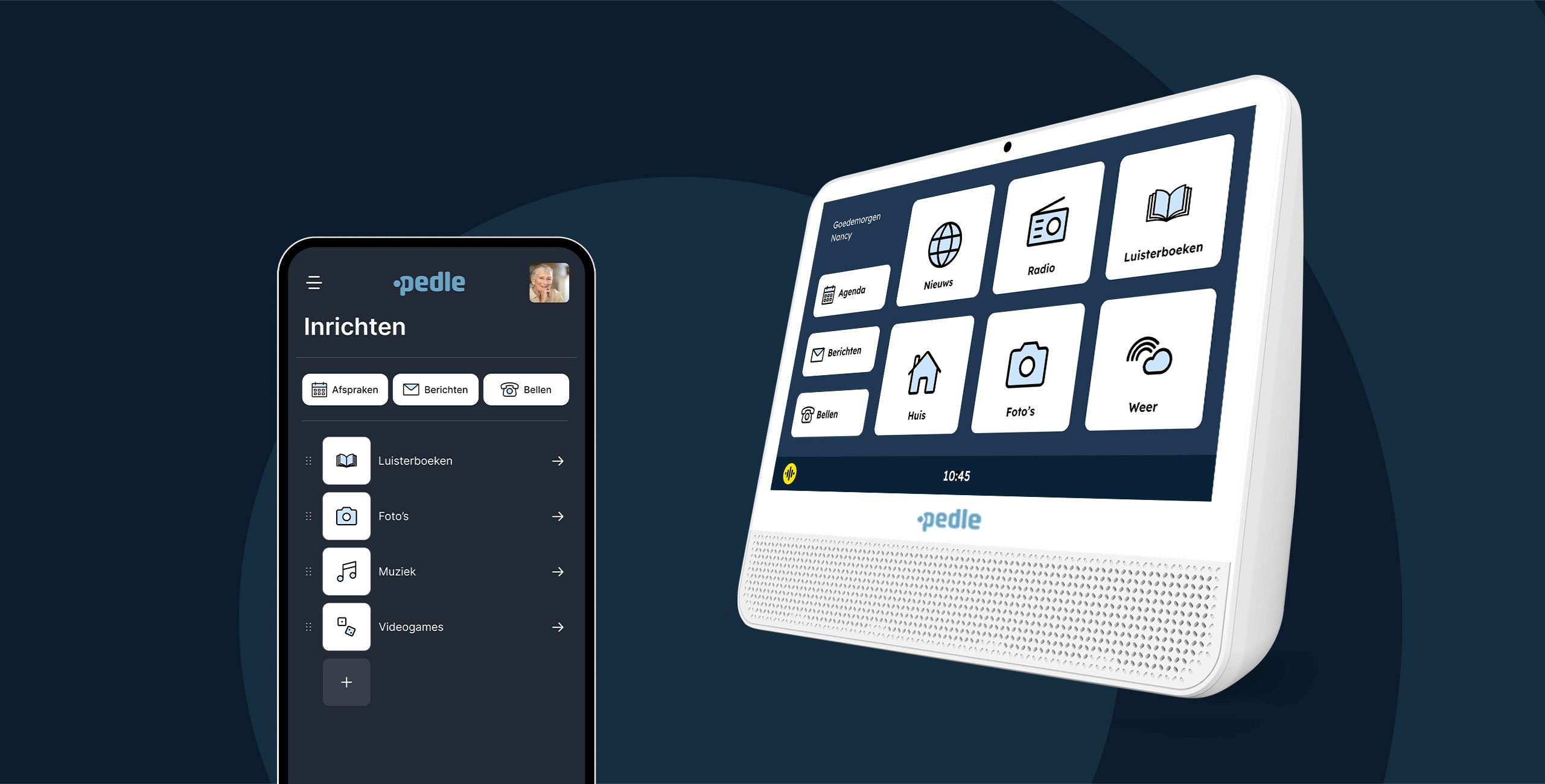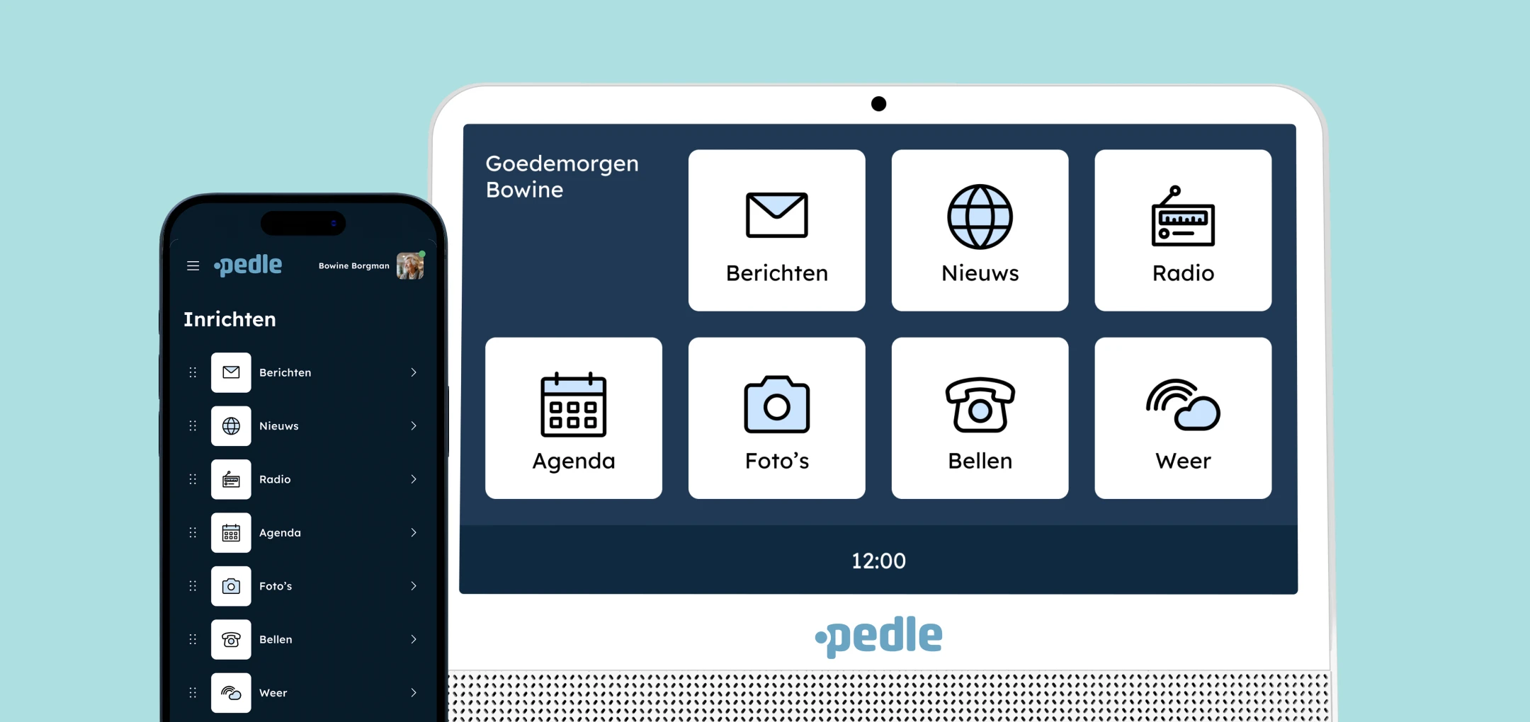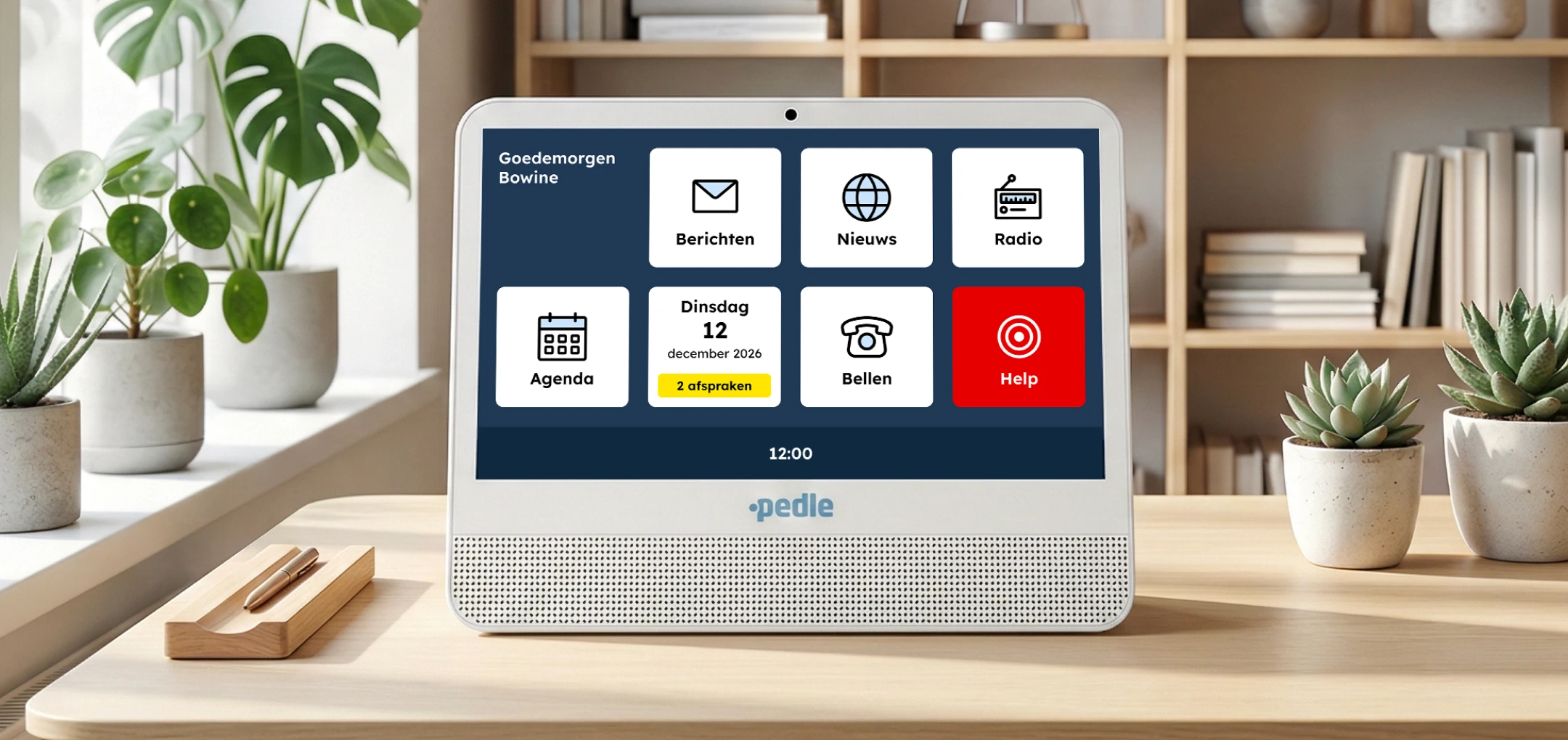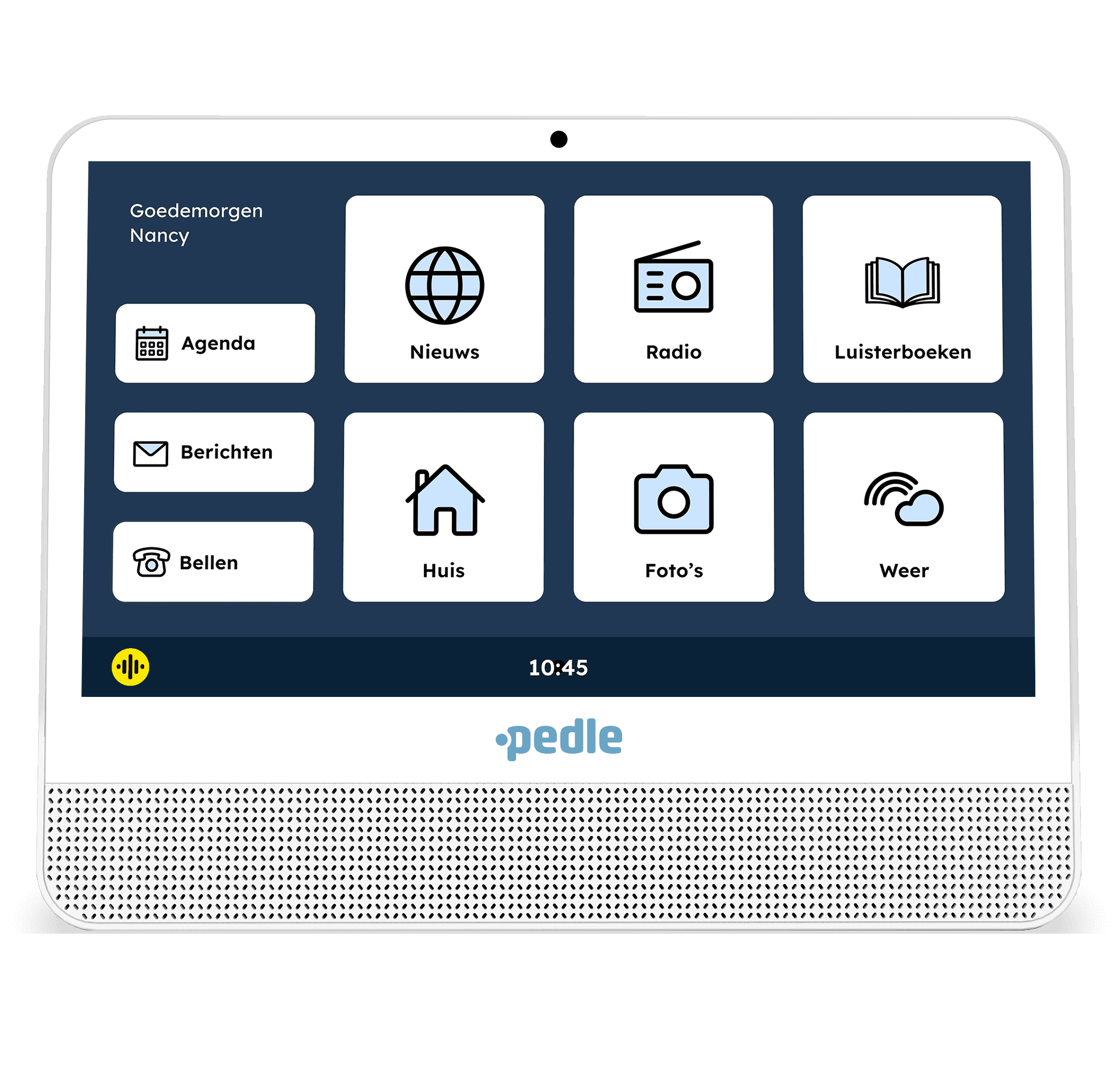 Pedle is een minimalistische computer speciaal ontworpen voor ouderen en mensen in een kwetsbare positie. Geen traditionele seniorentablet, maar een veilige en intuïtieve metgezel die biedt wat écht nodig is: eenvoud, betrouwbaarheid en relevantie. Met hetzelfde gemak waarmee de oudere kan omgaan met Pedle, worden ook zorgmedewerkers en familie verbonden.